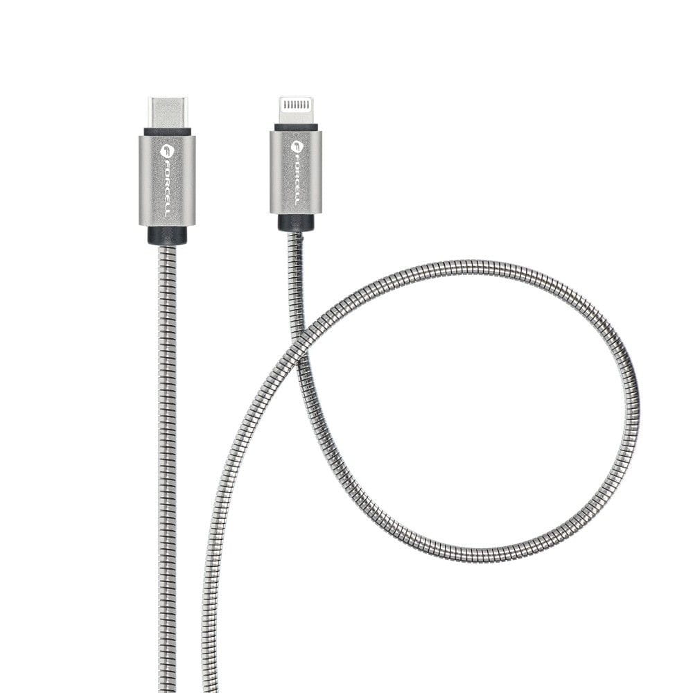FORCELL F-ENERGY Metal C238 kabel Typ C do Lightning PD QC3.0 3A 27W 1 m srebrny